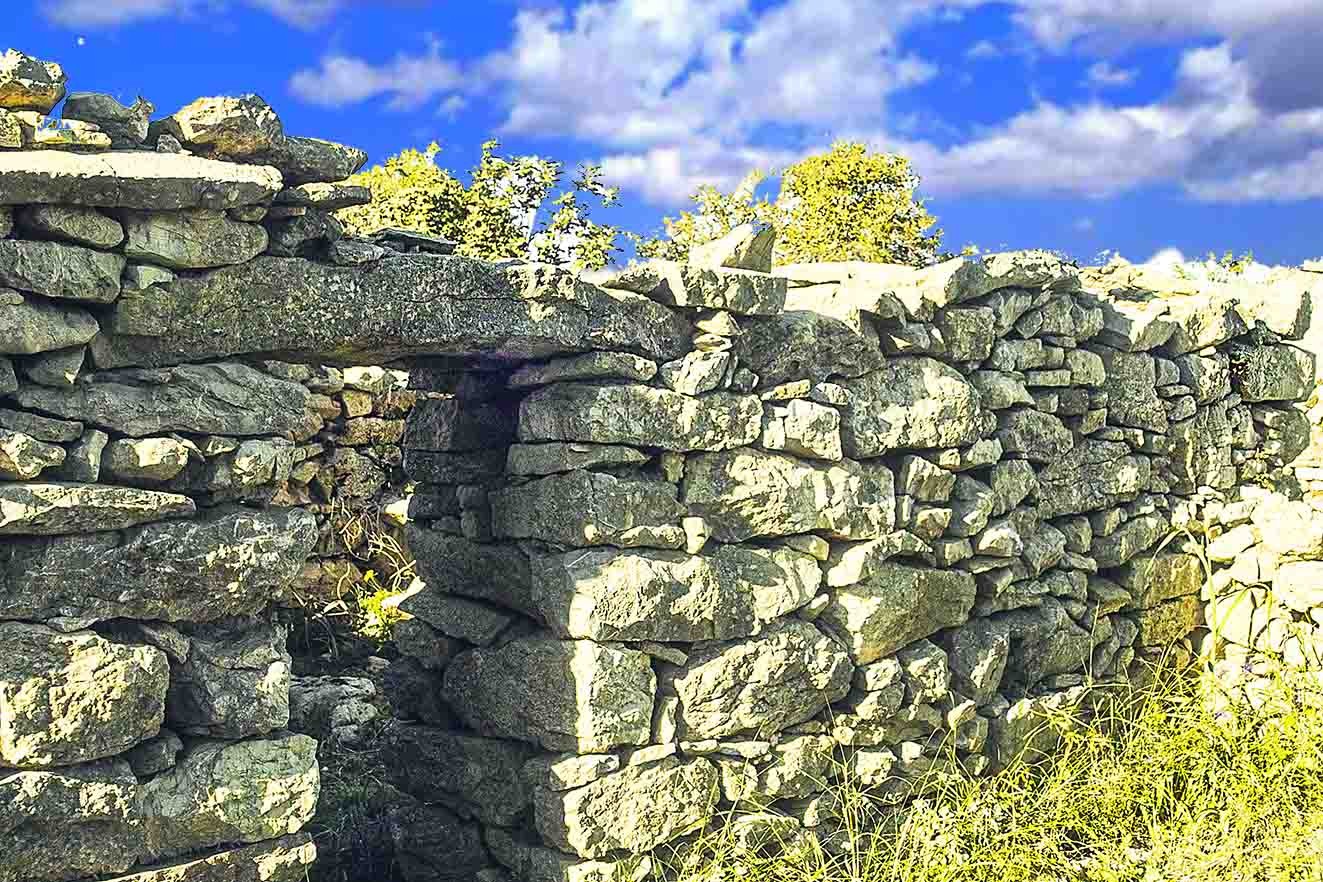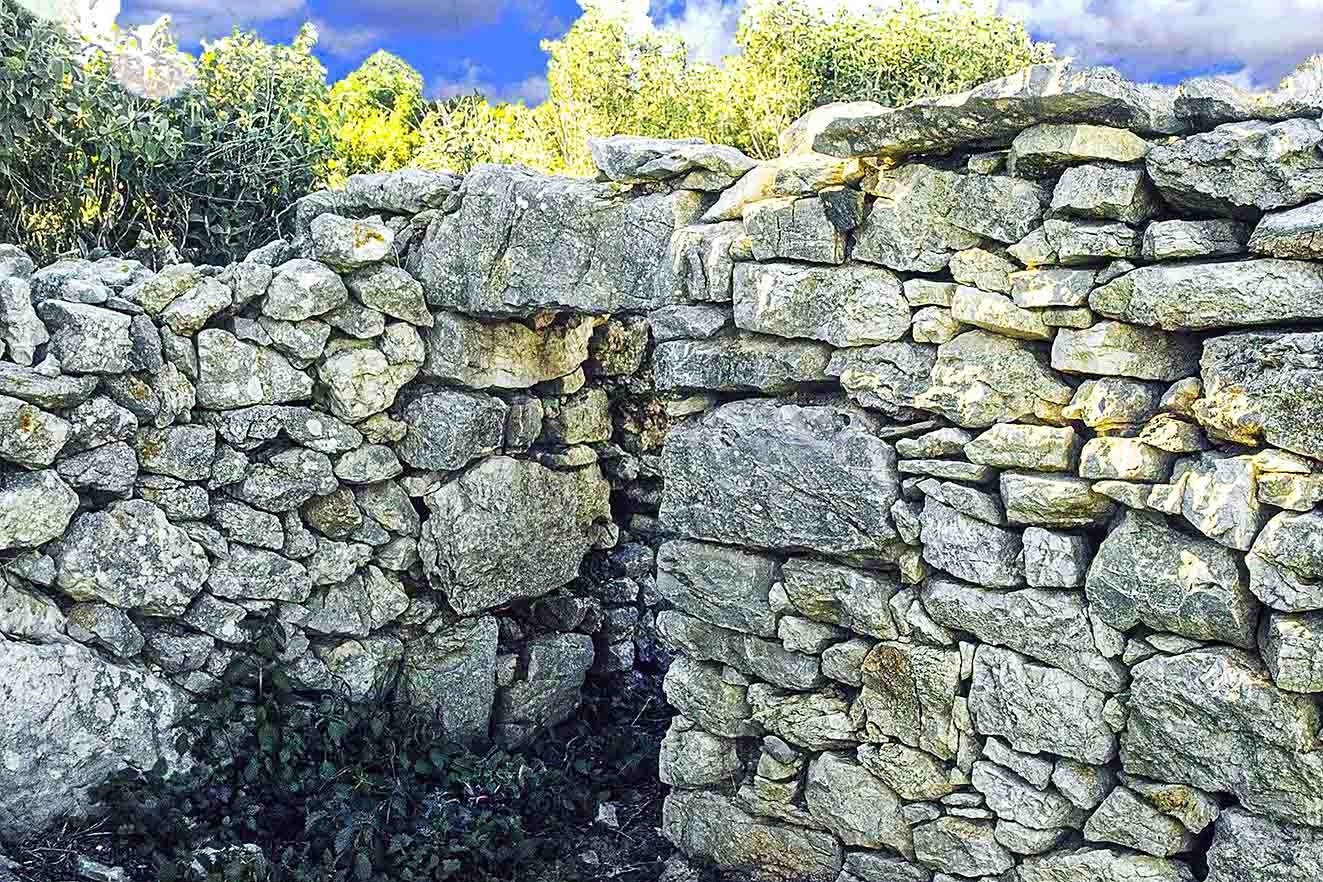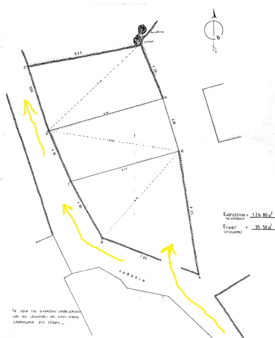 Το οικοπεδο ειναι περιφραγμενο με χοντρο πετρινο τοιχο κτιστο (ξερολιθια εκαντοετιων) και περιλαμβανει πετρινα ασκεπη κτισματα σαν ερειπωμενη οικια με αυλη και βοηθητικους χωρους. Το πετρόχτιστα κτίσματα ειναι περιπου 36 τ.μ. γκρεμισμένα και υπαρχει η δυνατότητα ανασύστασης ή ανακαίνισης τους.
